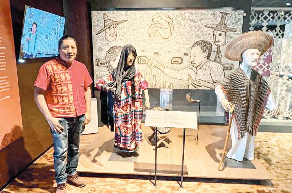En la sala “Textiles y fiestas” el visitante puede apreciar el lienzo Fiesta de muertos que representa la tradición de los Huehuentones, personajes centrales de los rituales de esa festividad en la región mazateca. La segunda pieza está ubicada en la sala “Historias, identidades y resistencias” y su título es Transición a la muerte, una alegoría