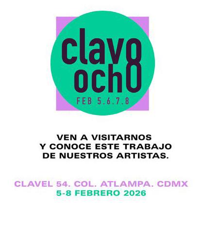 Durante la Semana del Arte, que da inicio este miércoles 4, hay otras ferias que también podrán visitarse, como la edición 12 del la Feria Material, enfocada al arte emergente y con sede en Maravilla Studios; Salón ACME, una feria que busca también impulsar a los artistas participantes, con sede en la colonia Juárez; Clavo Movimiento -Clavo Ocho-, que este año celebra su octava edición, con sede en Clavel 54, Col. Atlampa, CDMX; BADA, en Campo Marte; y además un circuito muy amplio de galerías que se suman a la semana de exhibiciones más grande en nuestro país. En estos días se contará con la participación de artistas de prácticamente todos los continentes; y los artistas zacatecanos también tendrán un espacio. En esta edición hablamos de el Proyecto Altiplano, conformado por Joaquin Trujillo, Gustavo Villagrana y Juan Carlos Villegas, quienes participarán en Clavo Ocho; también se presentarán Jorge Ismael Rodríguez -representado por la Galería Ana Tejeda, en el Booth EJ26- y Luis Carrera-Maul -con su proyecto Lagos Plataform, que exhibirá el trabajo de Riley Strom, Jerry McLaughlin y Olga Hilgers en el Booth EJ28- en ZSONAMACO; por su parte, Isis Vargas estará también presente en Salón ACME, en Calle General Prim 30-32, Col. Juárez, CDMX. La próxima semana estaremos compartiendo la información de lo que acontecerá durante esta Semana del Arte. Mientras tanto, deseamos mucho éxito a todos los participantes. Que disfrute su lectura.