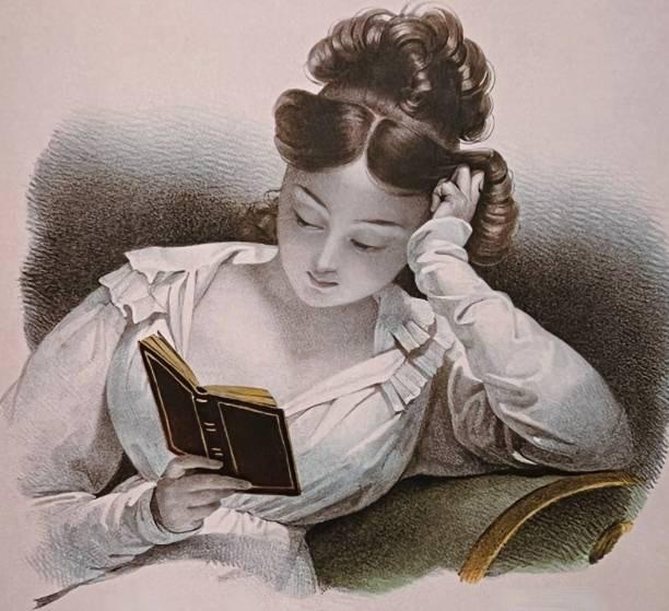 Mujer joven leyendo, 1840, grabado por Dubule. Biblioteca de Artes Decorativas, París, Francia