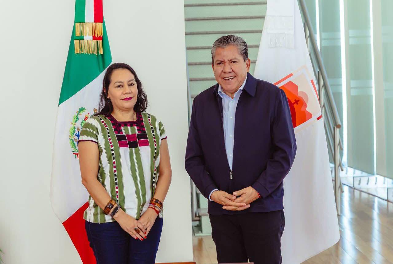David Monreal Ávila en reunión de trabajo con la directora general de Alimentación para el Bienestar, María Luisa Albores González. Foto: