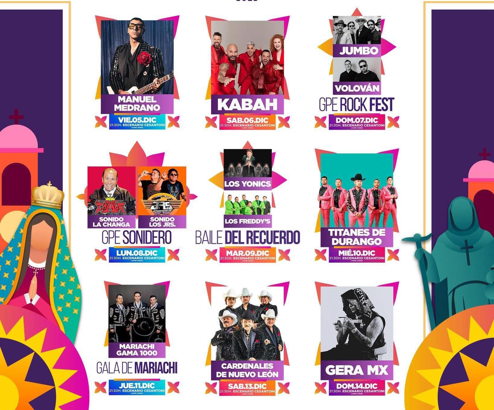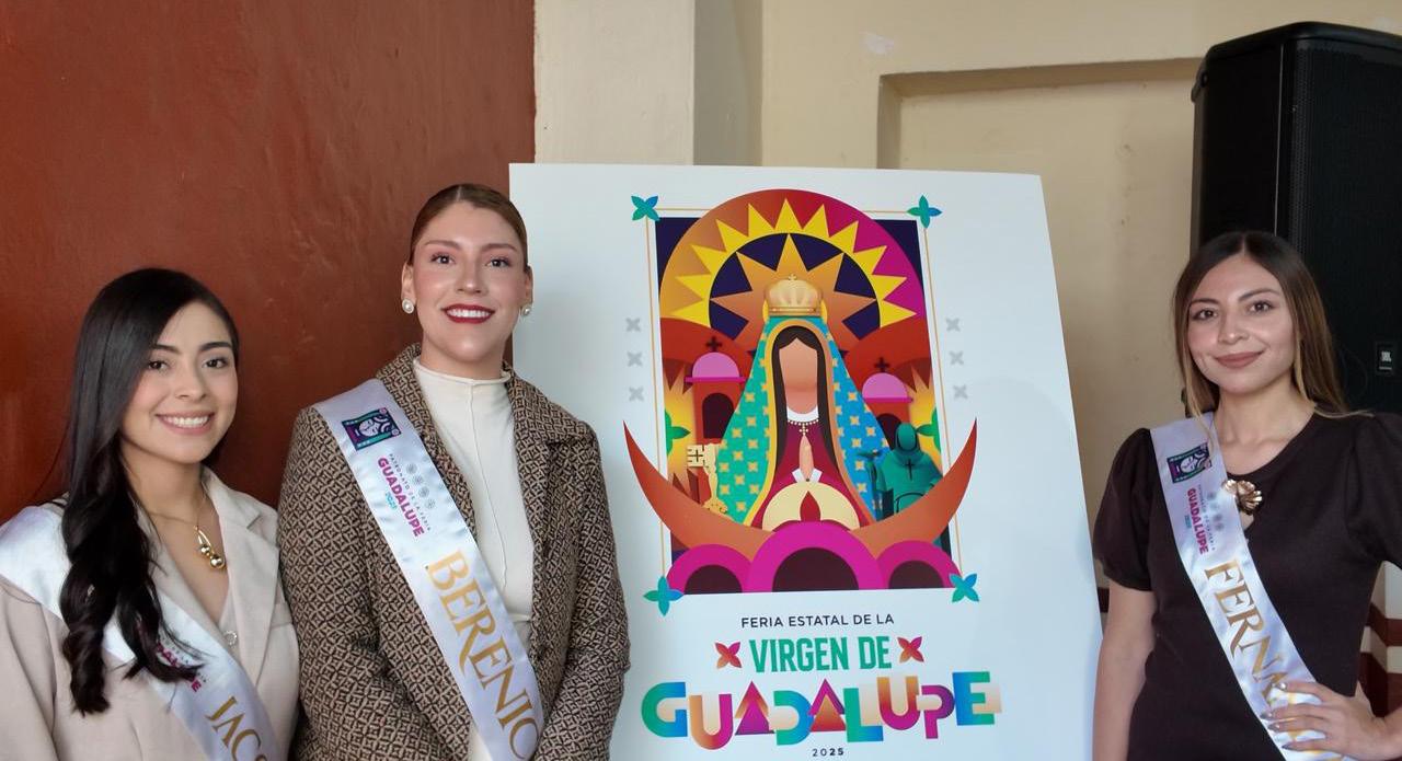 El Ayuntamiento de Guadalupe presentó el cartel oficial de la Feria Estatal de la Virgen de Guadalupe 2025, que se llevará a cabo del 5 al 14 de diciembre con conciertos gratuitos, actividades culturales, eventos deportivos y una amplia oferta comercial en el Jardín Juárez. El edil municipal, José Saldívar Alcalde, informó que se espera la llegada de 200 mil visitantes, una derrama económica aproximada de 70 millones de pesos tras una inversión cercana a los 14 millones de pesos, apoyada también por patrocinadores. Foto: Cartel oficial