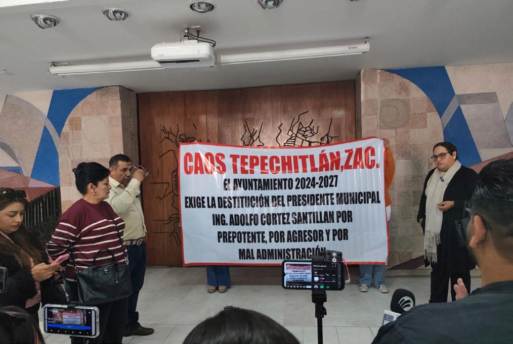 La síndica municipal de Tepechitlán, Elsa Luna Arellano, acudió este martes al Congreso del Estado acompañada por la tesorera, el secretario de Gobierno y una regidora para denunciar que el municipio atraviesa una crisis de “ingobernabilidad” de la que responsabilizan al alcalde Adolfo Cortéz Santillán, luego de haber rescindido a la tesorera y al secretario de Gobierno, cambiar chapas de la Presidencia Municipal e impulsar la aprobación de una obra pública casi cien mil pesos más cara que otra propuesta. A raíz de las destituciones, la Presidencia Municipal de Tepechitlán fue tomada por los funcionarios desde el 12 de noviembre, dejando paralizados los servicios municipales y el pago de nómina de aproximadamente 150 trabajadores. Miriam Serrano, la tesorera municipal rescindida, explicó que aún tiene bajo su resguardo los tokens del Ayuntamiento, pese a que su cese ocurrió el pasado 27 de octubre y la nueva encargada recibió el nombramiento el 12 de noviembre. “Mis tokens están resguardados porque son cosas muy personales”, dijo al