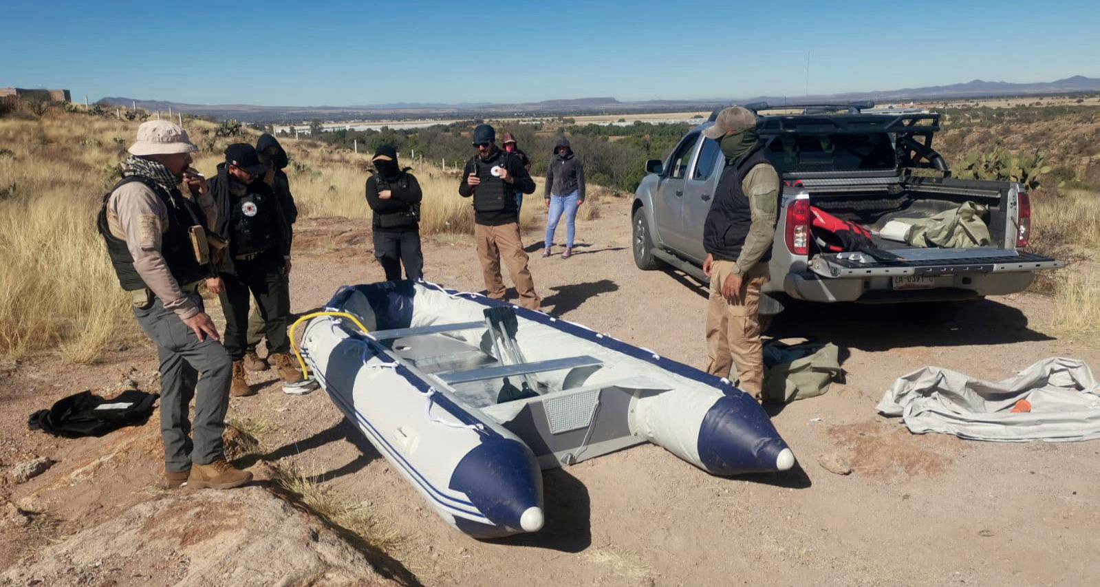 ▲ Con el acompañamiento de representantes de colectivos de familias de personas desaparecidas, autoridades estatales realizaron una prospección forense en la presa de San Marcos, de este municipio, y el de Villa García. Las acciones de búsqueda fueron realizadas por personal de la Comisión Local de Búsqueda de Personas Desaparecidas y la Fiscalía Especializada en Atención al Delito de Desaparición Forzada y Desaparición Cometida por Particulares, quienes hicieron recorridos pedestres apoyados por drones, georadares y herramientas de mano. Además, personal de Protección Civil llevó a cabo algunas inmersiones en las aguas de la presa, con la finalidad de encontrar indicios que permitan la localización de personas desaparecidas. Foto: Cortesía