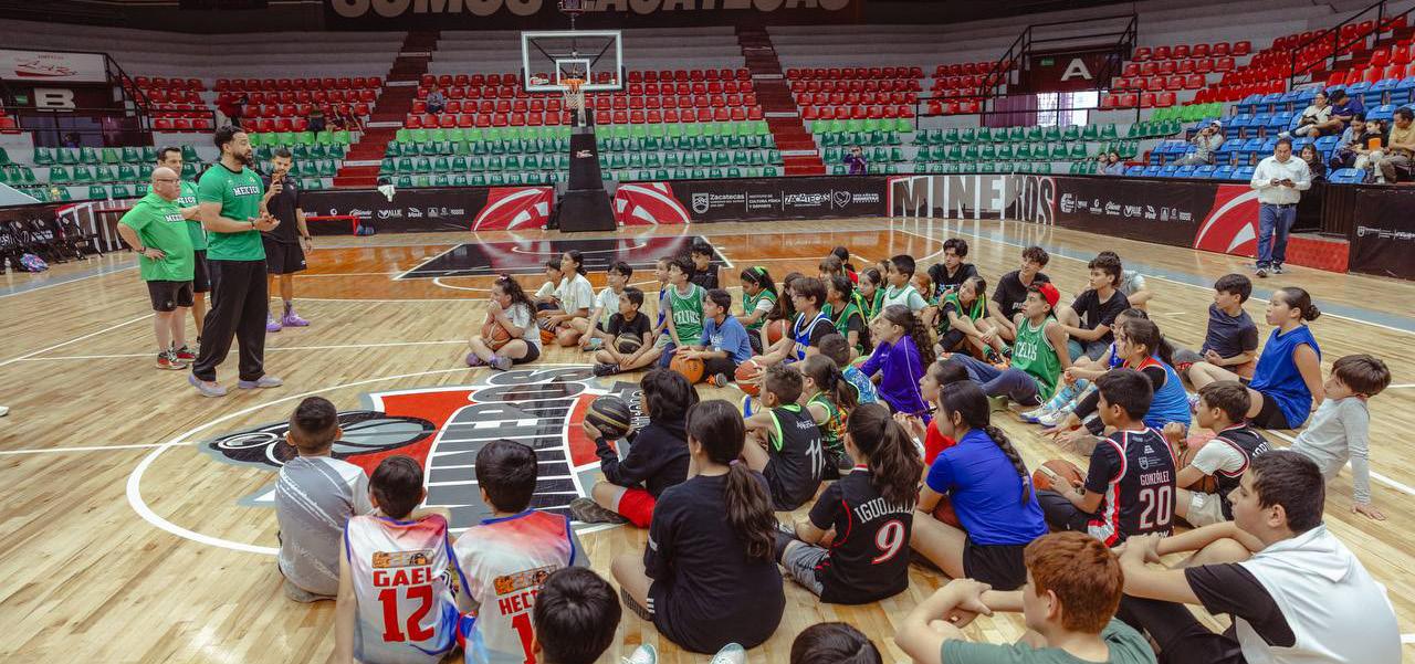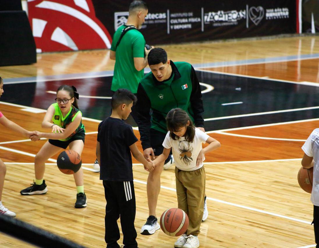 En un momento histórico para el basquetbol zacatecano, niñas y niños participaron en la clínica de basquetbol que otorgó el coach de la Selección Mexicana, Omar Quintero, junto a jugadores como el capitán Gabriel Girón, Moisés Andriassi, Víctor Álvarez, Bryan Martínez, Alberto Cruz y el zacatecano Bryan Rivera.