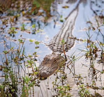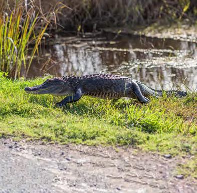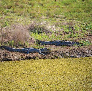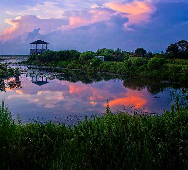 Travelingsouth,you’llcometotheSabineNational WildlifeRefuge.AsyoudrivethroughSabineNWR, you’llseesignageforseveralrecreationalareaswhere youcanstoptofishorcrab,visitwiththelocalsand perhapscatchsightofalligators.AttheBlueGoose Trail,thereisaone-milepavedwalkwayleadingyou totheedgeofCalcasieuLake.Continuingsouth,you’ll reachWetlandWalkway,a1.5milehandicap-accessible walkingpathrightintotheheartofthemarsh! Headingsouthagain,you’lldiscoverHollyBeach— partof26milesofaccessibleGulfbeaches– greatfor shelling,surffishingorablanketpicnic.