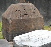 Letters on a cast iron star-shaped marker indicates that the grave is that of a member of the “Grand Army of the Republic,” a Union Army Veteran of the Civil War . GAR cast iron stars, occasionally also represented by letters on house shaped concrete marker