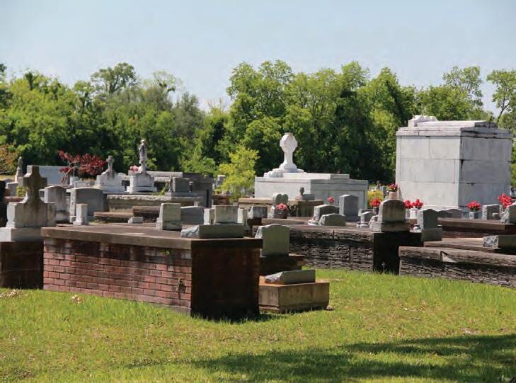 French, Italian, and Irish names on headstones attest to many of the early immigrant groups that helped to build Lake Charles. Burials here ceased in 1914. Note the Sicilian-style mausoleums on the eastern edge of the cemetery.