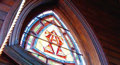 This is a decorative Eastlake style house built for the Rocks, the first couple married at Episcopal Church of the Good Shepherd. The three gabled windows feature true leaded diamond paned glass.