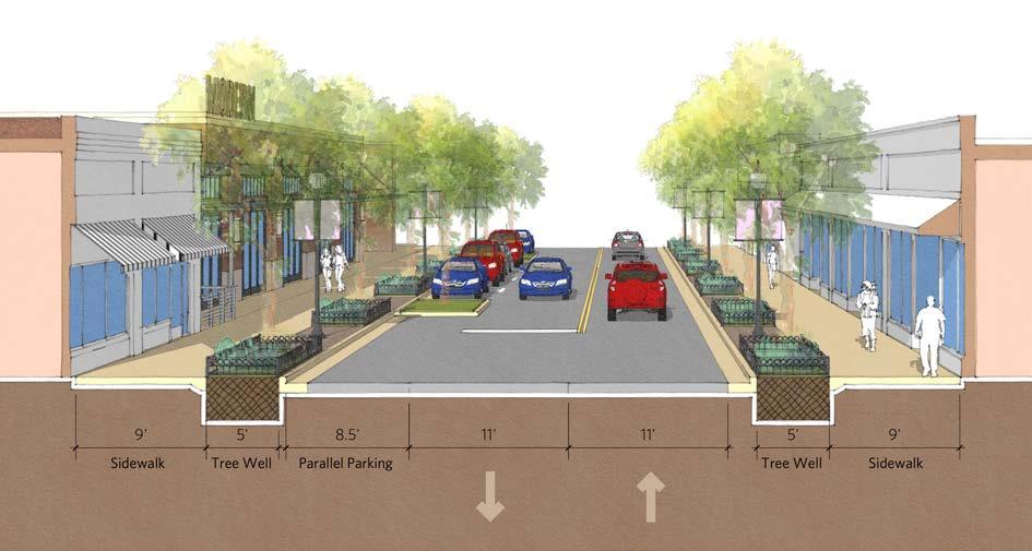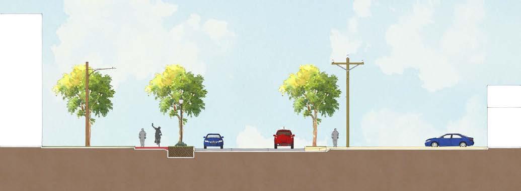 • Detectable warnings and/or color contrasts must be incorporated to differentiate the roadway and the sidewalk