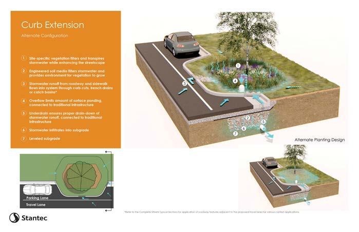 • Works well with curb extensions and textured crosswalks