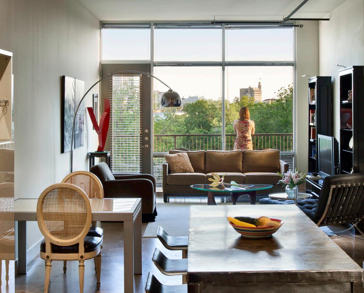 Built on the site of the 1968 Worlds Fair, The ’68 embraces its location adjacent to a new park with expansive views of the city. The mixed use project embraces local materials and is a new mixed-income apartment building providing downtown San Antonio with a unique living experience. The building has several amenities including a public/private parking garage and direct walkability to Hemisfair Park. Every unit is situated on the site to face the park. This building offers some of the best views in San Antonio facing towards La Villita and the Torch of Friendship through the stunning Hemisfair landscape. In association with WGW.