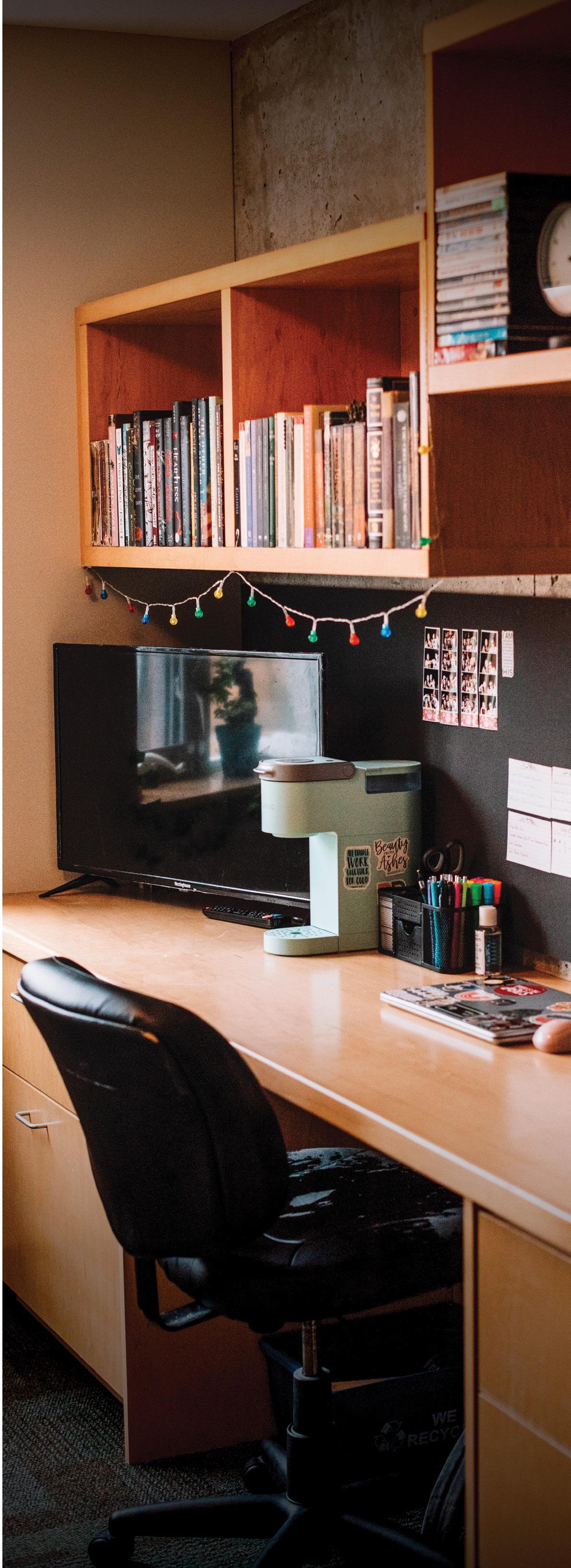 First-year students are housed in our dorm-style Residence Halls, which have double, basic single, and single rooms. Each room is fully furnished with a bed, desk, desk chair, small fridge, closet, and dresser for each student. Residence Halls are divided into houses for 20-30 students. Each House has a study room, lounge, and card-operated laundry facility. A full meal plan is included with the accommodation package. Upper-year students can live in an apartment or townhouse, with the freedom to cook their own meals, or in residence halls with a full meal plan.