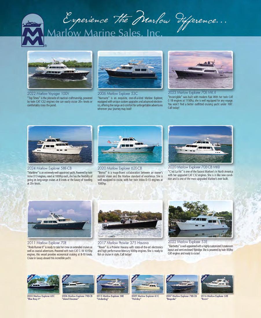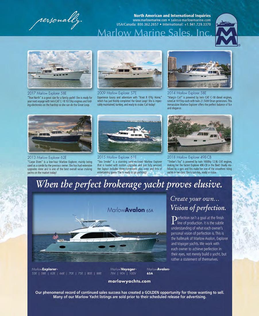 2000 OCEAN YACHTS 48 SUPER SPORT FLY BRIDGE Beautiful salon with pull-out sofa, fully equipped galley, three staterooms, two heads. Two Caterpillar diesel engines deliver impressive speed and handling. Past and current maintenance records available. Asking $325,000. Contact Norm Baur: 216-644-9366 or nbaur@baymarine.net. BAY