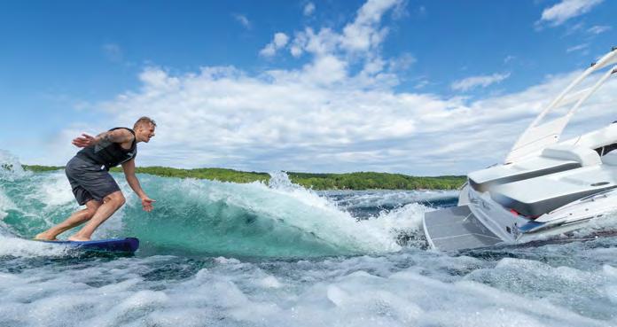 Nothing beats the summer tradition of loading the boat with boards of all shapes and sizes and spending the day towing squealing kids around the lake! Our feature this month, “The Right Wake” (p. 38), brought back many memories of waking up early to hit the lake while it was flat as a pancake and trying (and usually failing) to get up on a wakeboard or waterski. Let’s be honest, I was always more adept at the art of tubing. We’ve come a long way in terms of towsports since I was a kid (e.g. wakesurfing and wake foiling), but the one fact that remains is that different towsports require different wakes. Contributor Zenon Bilas walks us through how to find the perfect wake for your chosen towsport.