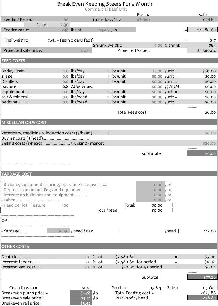 This year cost of production is a little higher sitting at $2.22 per pound of weaned and sold calf as where last years was $1.86, we believe that this is because of the increase in things like our feed cost the number of animals we sold, our pasture rent going up and of course our vet cost going up. Next year's cost of production should be about the same or lower, as we are expecting a rise in cost but also a rise in calf prices again.