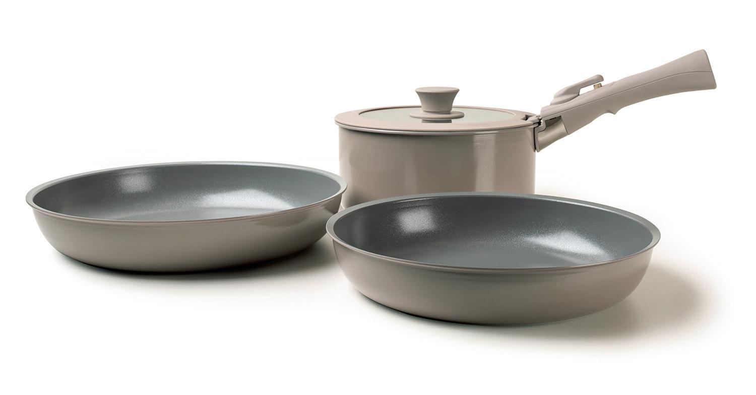 Taking up far less room than traditional pans thanks to their detachable handle, these ones nest neatly inside each other. Perfect for smaller kitchens, campervans or anyone who craves a tidy kitchen. Includes: 20cm saucepan, 24cm frying pan, 28cm frying pan, 20cm glass saucepan lid and detachable handle. Ref 27972 £69.99