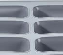 This sleek rack holds up to 11 plates, has a flat area for bowls, cups and glasses, and a removable cutlery holder. Powder-coated aluminium. With non-slip feet. 43.5 x 32.5cm.
