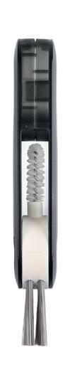 Cleverly storing three brushes in a compact design, it’s U-shaped brush cleans rims of bottles and glasses, the crevice brush gets into tight spaces and the hard bristle brush can clean out grooves and corners. 14cm L.