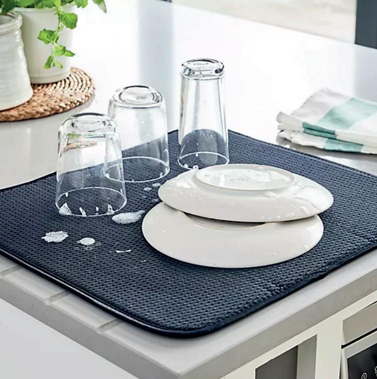 Highly absorbent and quick to dry, this microfibre mat cushions delicate dishes and handily extends your drying space. Machine washable.