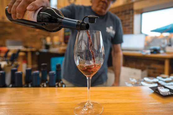 room opened in late 2023, with Scott and Elizabeth Barone at the helm. Often, Scott pours wine and answers questions at the tasting bar. Laconia Ale Works in Sparta provides an exclusive Mexican lager and pale ale for this vineyard. Ticketed events, such as Neil Diamond Night on May 15, are planned throughout the year.