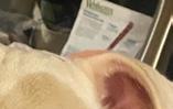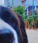 he deserved love. He does this by surprise licking attacks that land square on our mouths, and if we’ll let him, by using our ears to satisfy his ear-nibbling fetish (he nibbles the ear of our Pit Bull too). He follows us everywhere—respecting one’s privacy is not his thing. Granted, he’s not the most intellectual of canines—he still wears a look of confusion (what we call the “Goose face”), and when the front bell rings he runs helter skelter to the back door and barks ferociously at the person who isn’t there. But what Goose lacks in brainpower he makes up in devotion, loving us with every ber of his being and never letting us forget we are the center of his world.