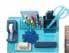 The laundry room doubles as a craft room. It features dreamy storage spaces for supplies and resilient finishes, like the indestructible quartz countertop and tile floor. Drying racks for artwork and paintings are hidden beneath the counters. The robin’s egg blue enamel is unexpected and playful.