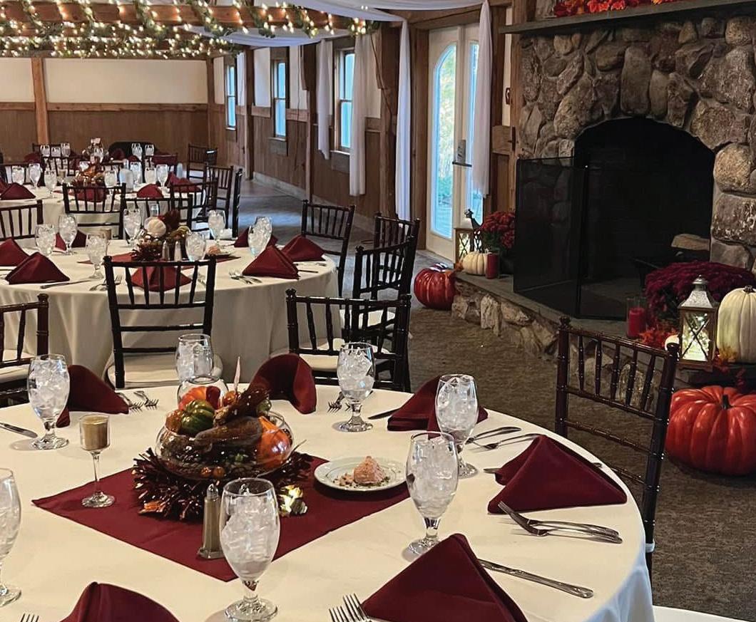 The Almagra Barn at Waukewan Golf Club, located in the heart of the Lakes Region, was an 1800’s operating farm, but now operates as a golf club and has everything you are looking for in a charming New England setting. The function facility is an elegant post and beam barn with a beautiful field stone fireplace, all of which is surrounded by beautiful mountain views and greenery.