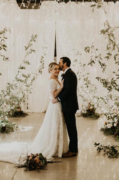 beautiful, atmospheres. The reception continued inside a tunnel of twinkle lights with lush greenery for an intimate and romantic experience.”