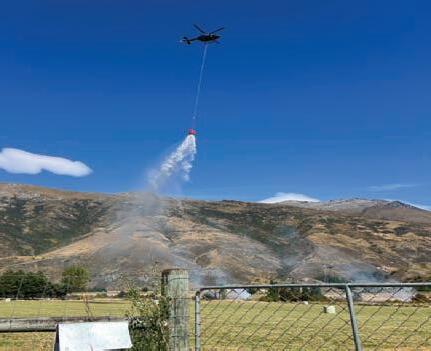 A helicopter with a monsoon bucket goes to work over the blaze at Morven Ferry, near the Gibbston Trail on Friday, 6 March.