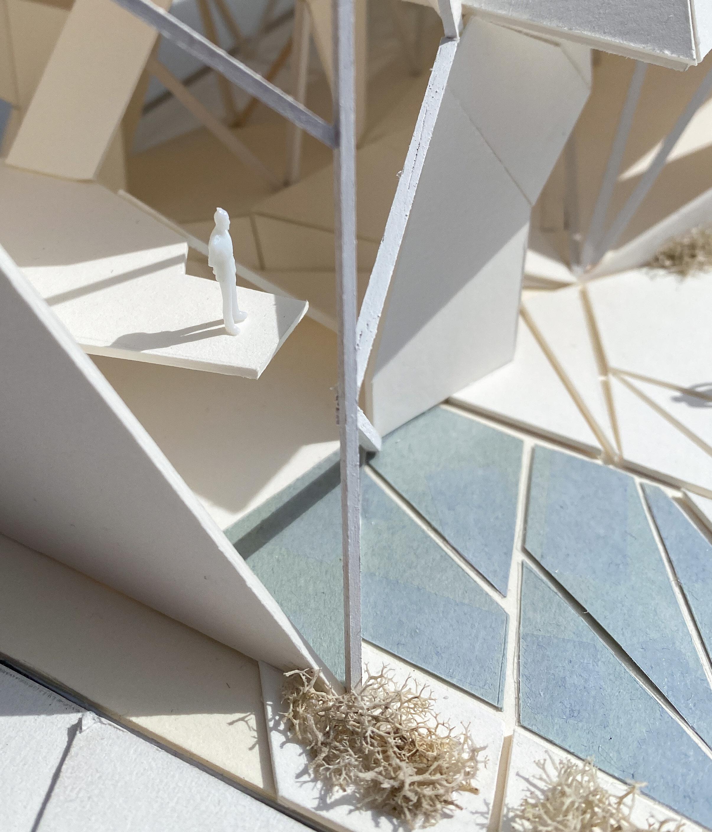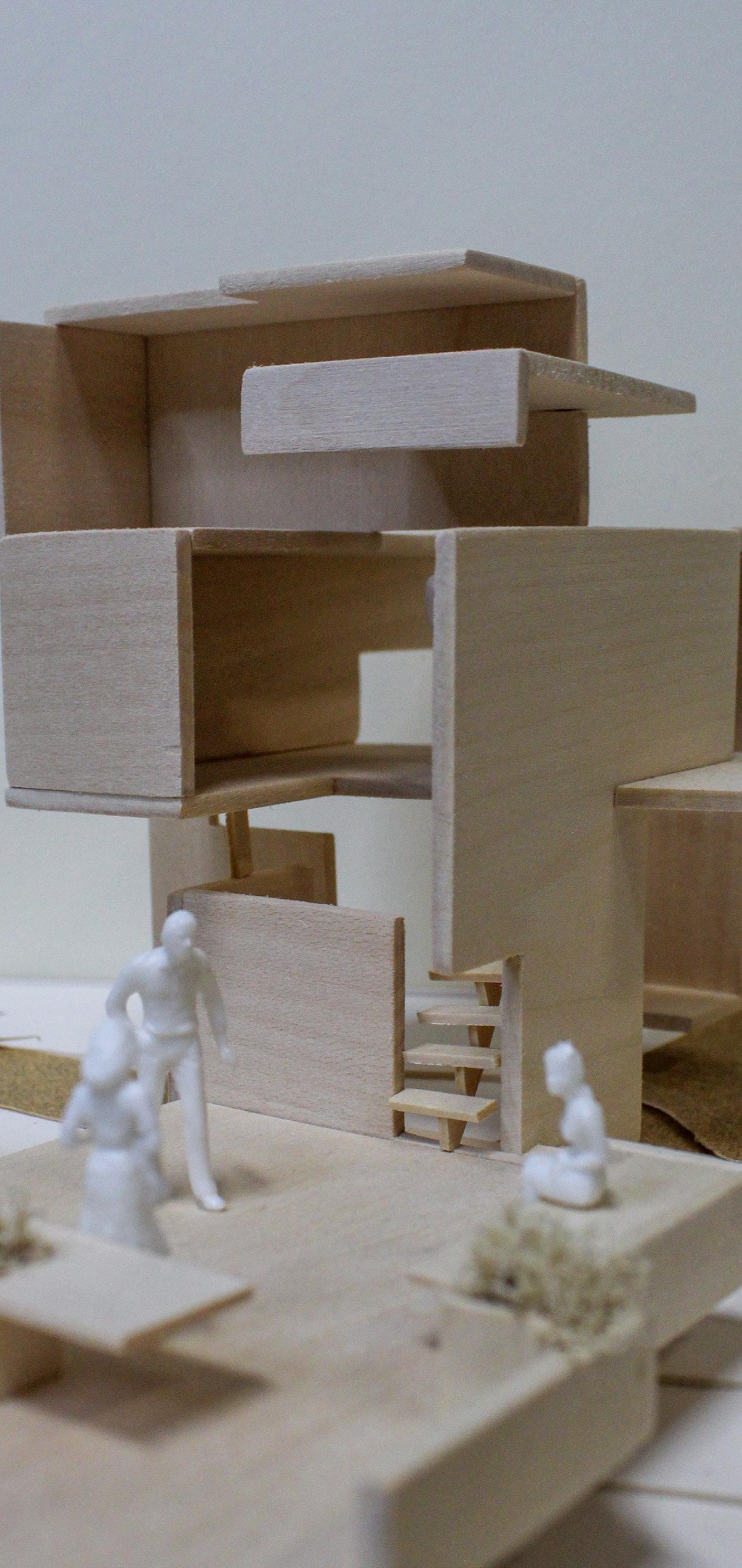A key learning objective for this project was to learn how to hand draft drawings and use sketching to understand space. Due to this objective, all the final drawings were hand drawn on vellum with micron pens. In addition, there was no fabrication allowed for the physical model, everything was cut with X-Acto and utility knives.