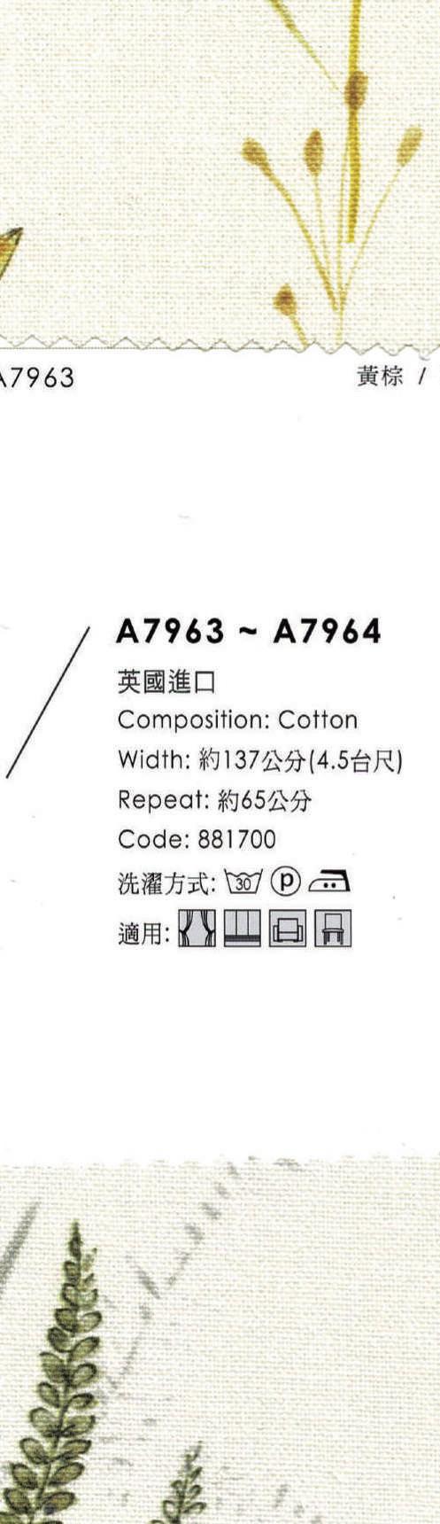 Composition: Cotton Width: 約 140 公分 (4.6 台尺 ) Repeat: 約 63 公分