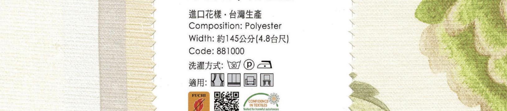 Composition: Polyester Width: 約 145 公分 (4.8 台尺 ) Repeat: 約 69 公分