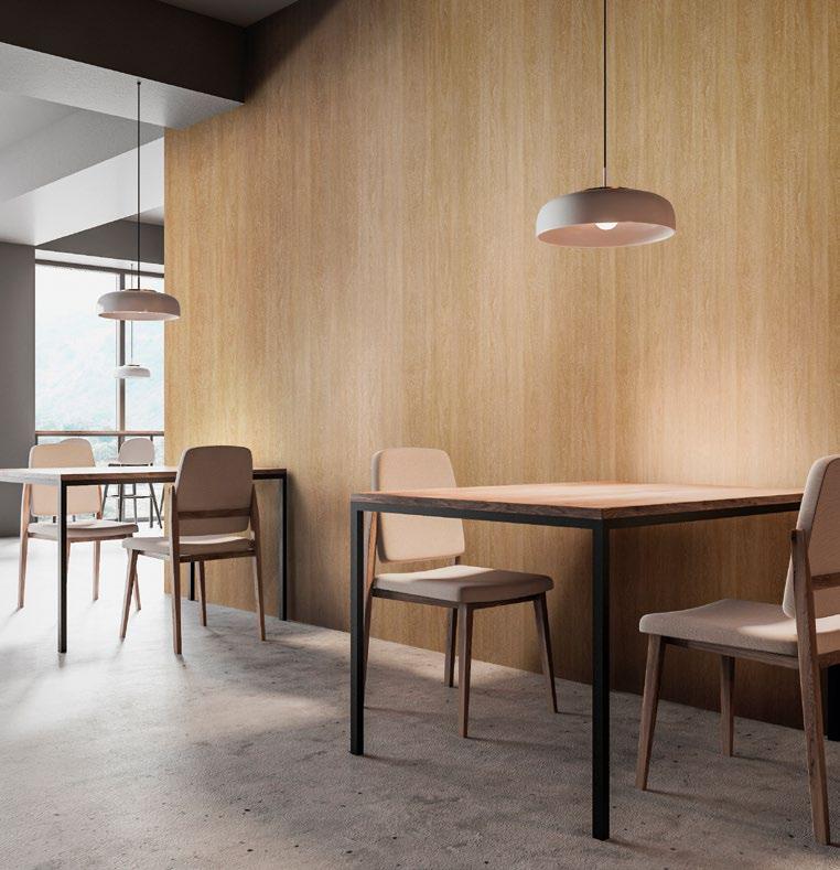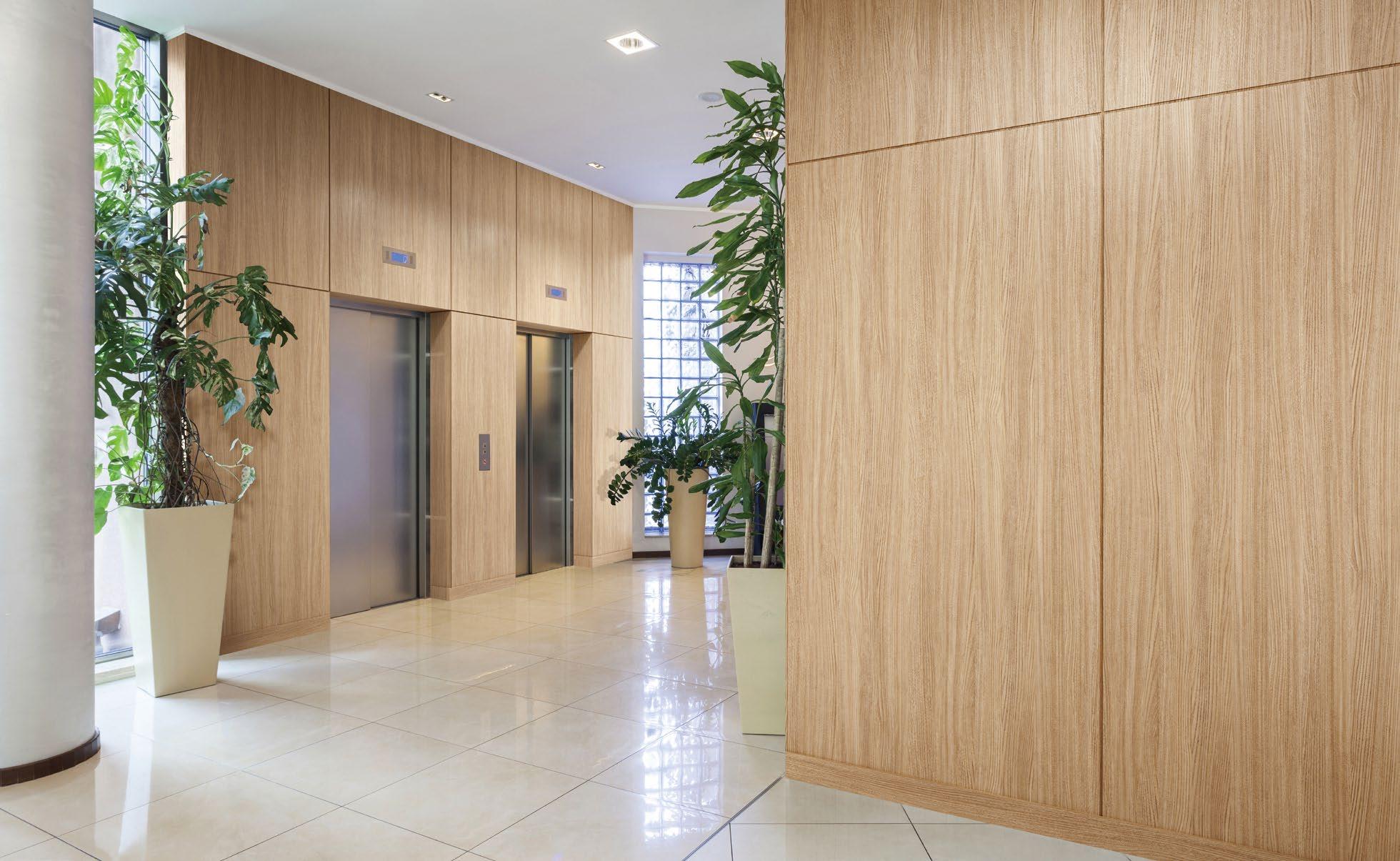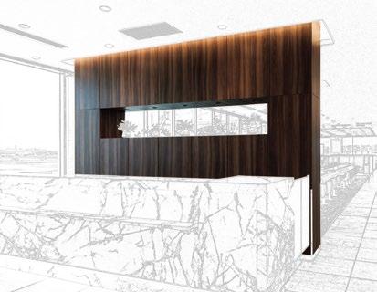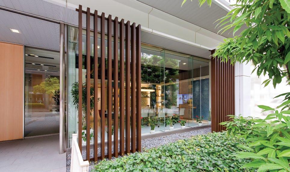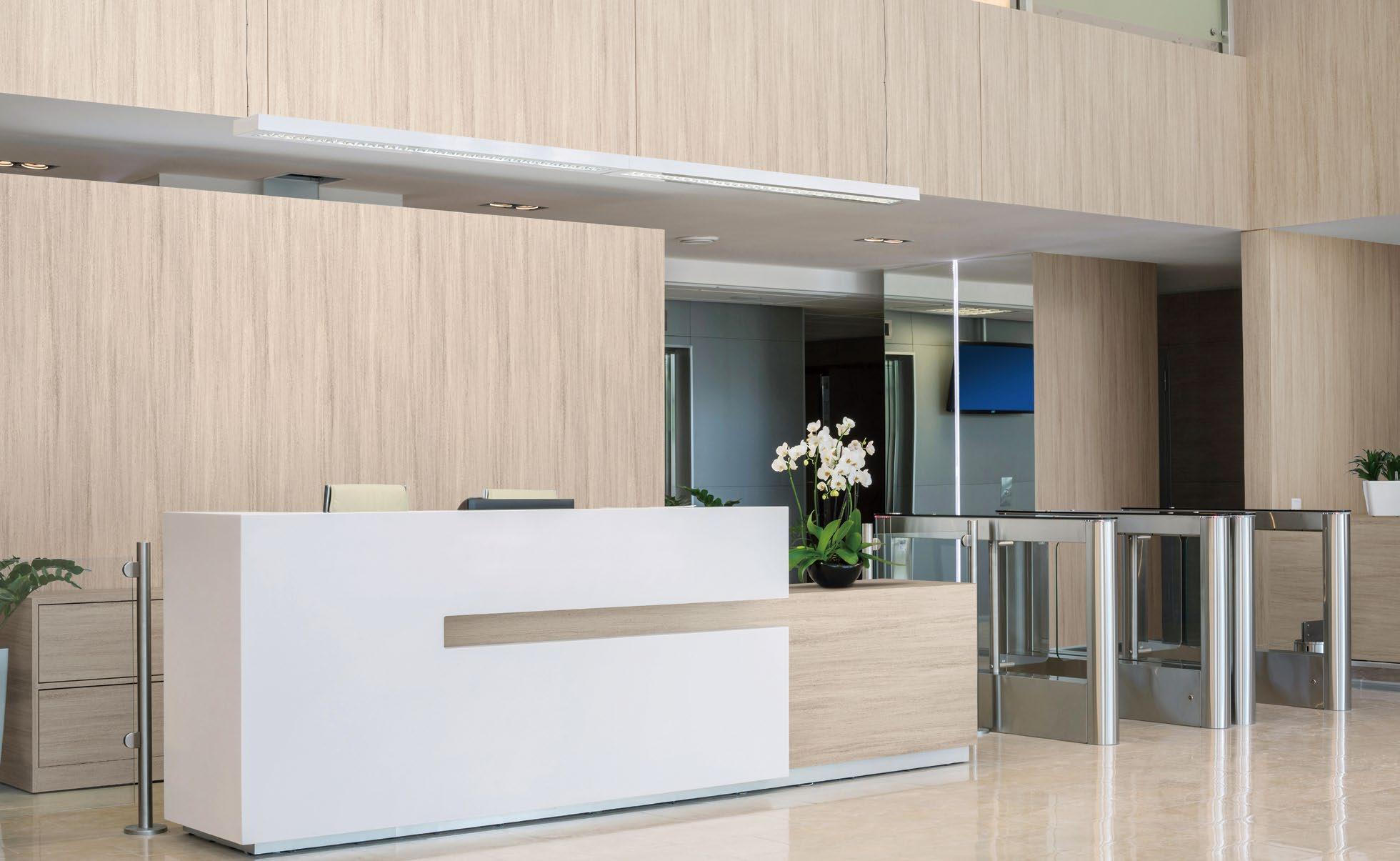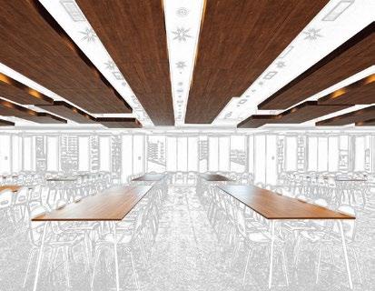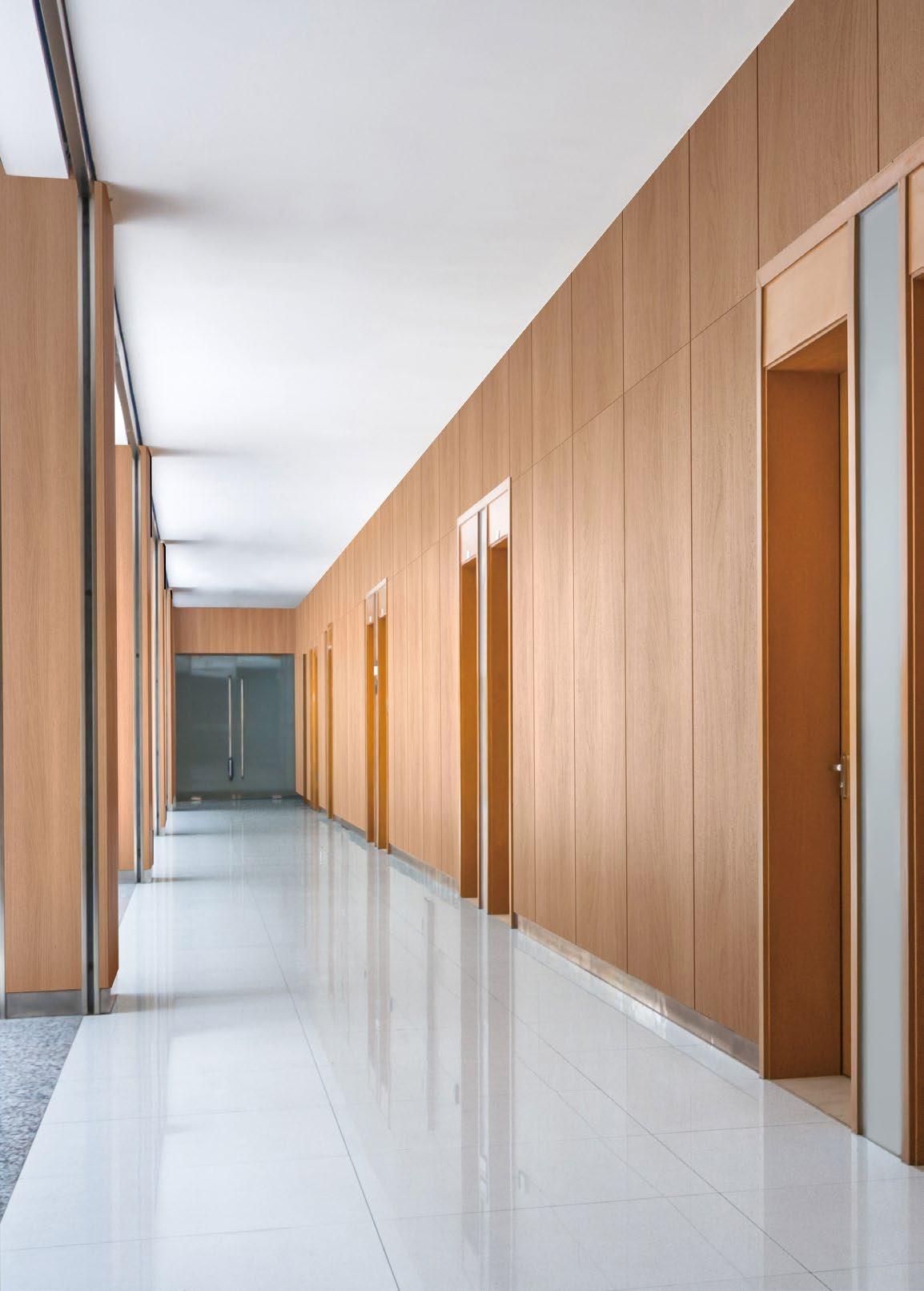 オルティノフィルム貼りの装飾パネル、ルーバーと組み合わせ、 統一感のある空間作りを実現します。