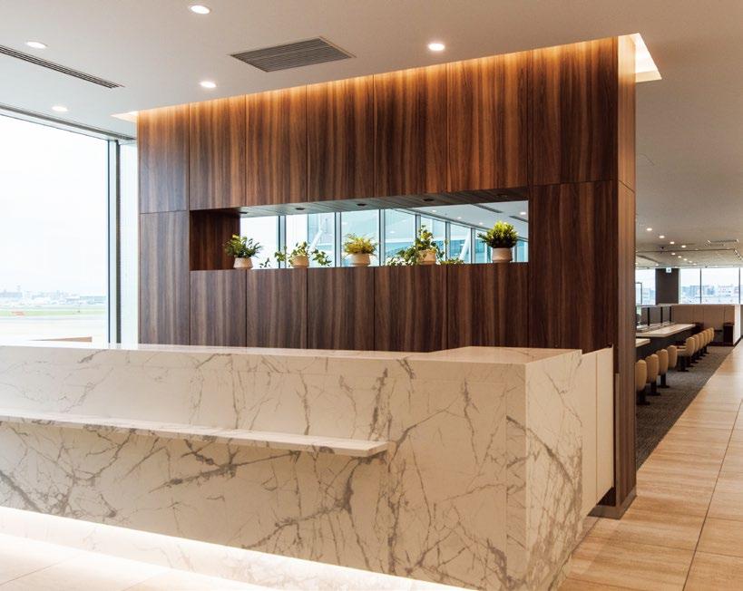 ビジネスコーナーや眺望など、出発前のひとときを楽しめるラウンジ。