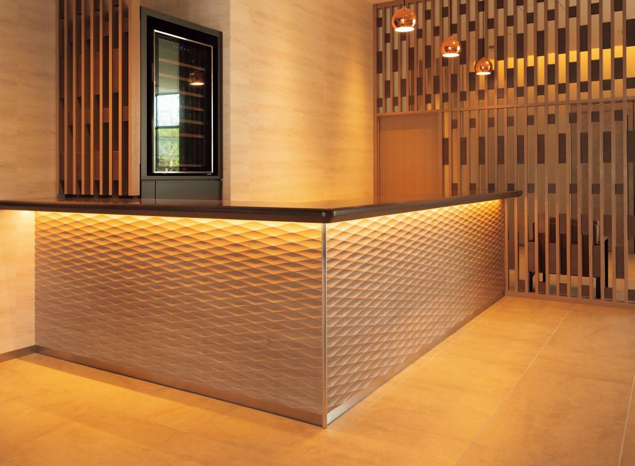 オルティノや他の化粧材と柄連 動。部位によって最適な仕上げ を選択可能。