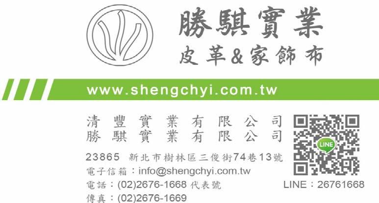 勝騏實業主要經銷車用皮革、家飾家具皮革與家飾布,多年來深耕市場,是台灣知 名面料供應商。成立以來,持續不斷開發出多樣化的產品以因應客戶的需求。我們提供 完善的服務,給予客戶最好的品質;我們了解您的需求,指定『勝騏出品』即是可以安 心信賴的好選擇。