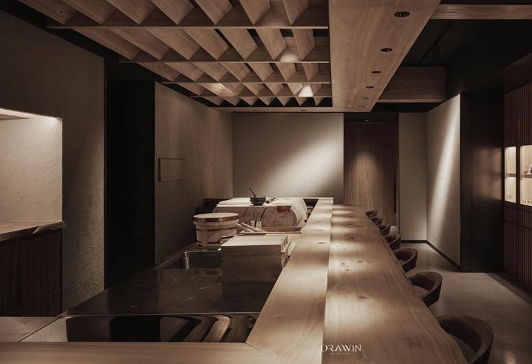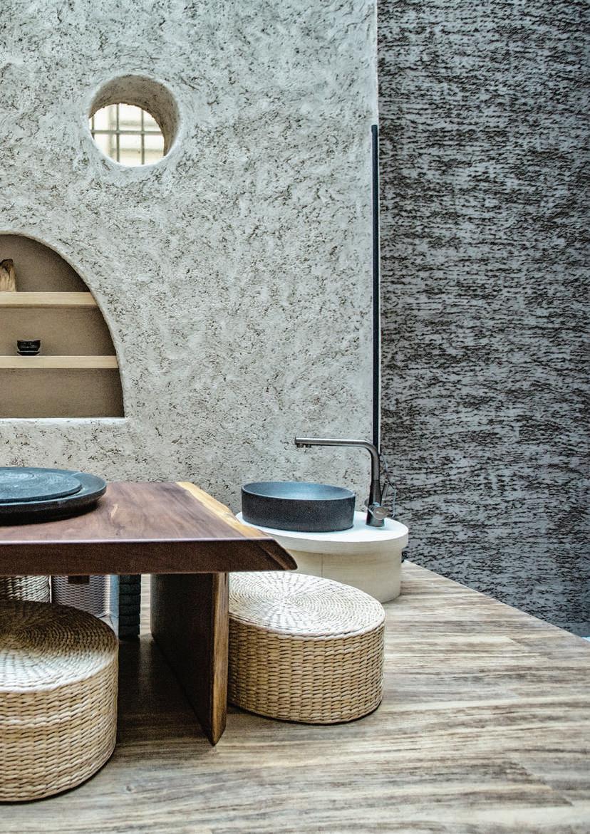與泥作師傅搭配傳統日式的左官技法,讓空間充滿了故事性與藝術性。