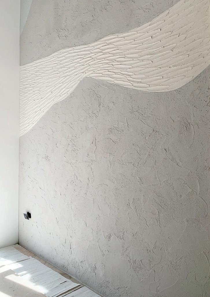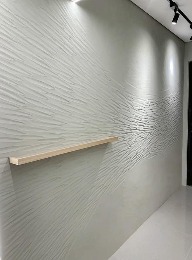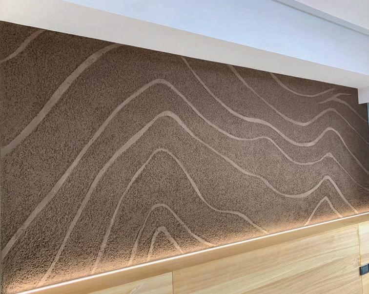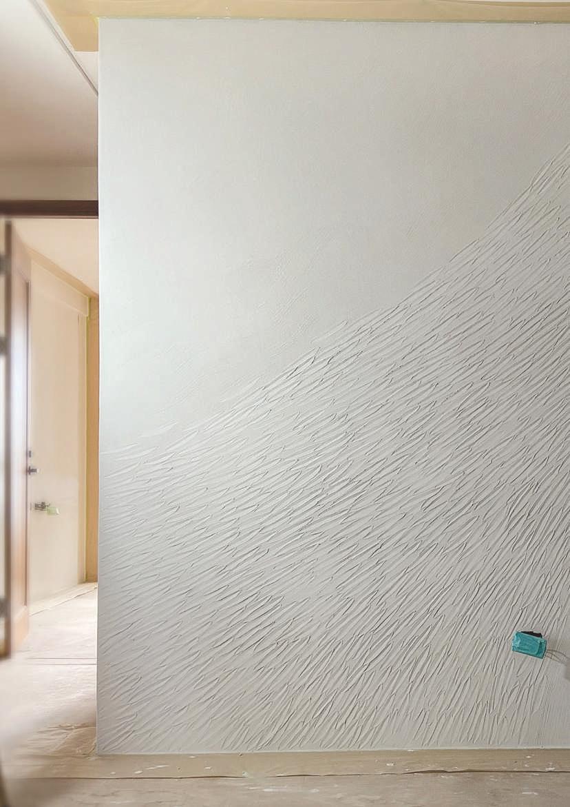 玄關、電視牆·細絲+流+浪、浪+平(SN-25) 白洲土8mm、5mm 顏色:ND-04、SN-25