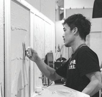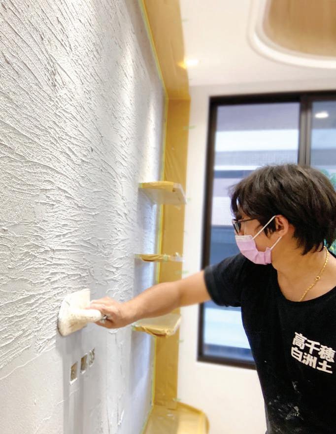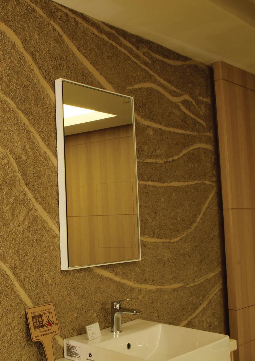 當然,如果像大多數的珪藻土一樣混和樹脂就能簡單地製作 出來,但新留社長堅持最初的信念,材料一定要100%自然 素材,不能有化學物質的混入,因此與許多研究人員、建築 師、專業的泥作師傅合作研究,經歷了多次的失敗,五年後 白洲土終於完成了。