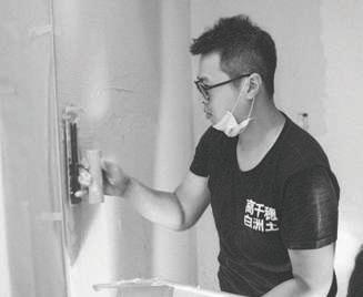確認牆面的產品及顏色後,會使用對應的維修色粉去修補。