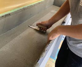 下地材靜置一周後,才能施作白洲土外牆面材 下地材施工完成面5mm