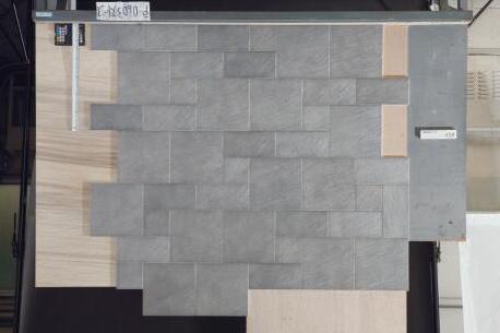 將專用黏著劑以梳紋狀塗在底材上。 將 ECOCARAT+ 推入並壓貼。 舖貼 ECOCARAT+ 不需留接縫。將上述簡 易間隙片插入,很容易就可以調整接縫。