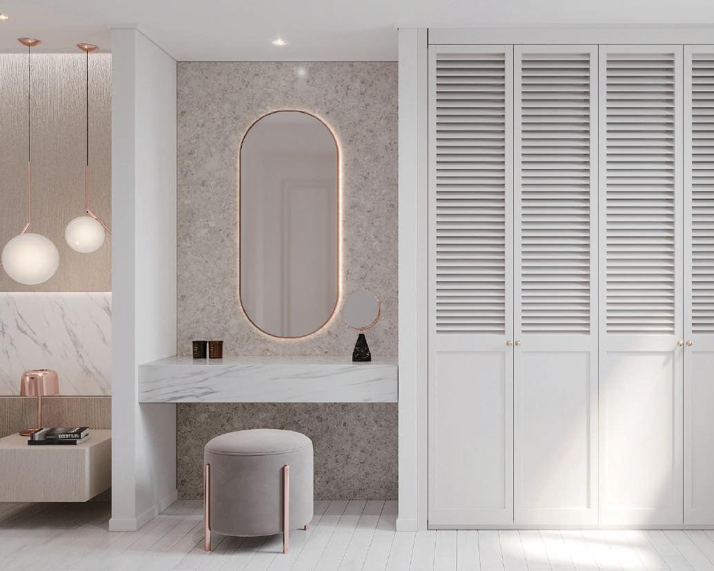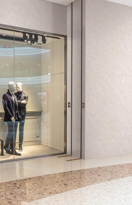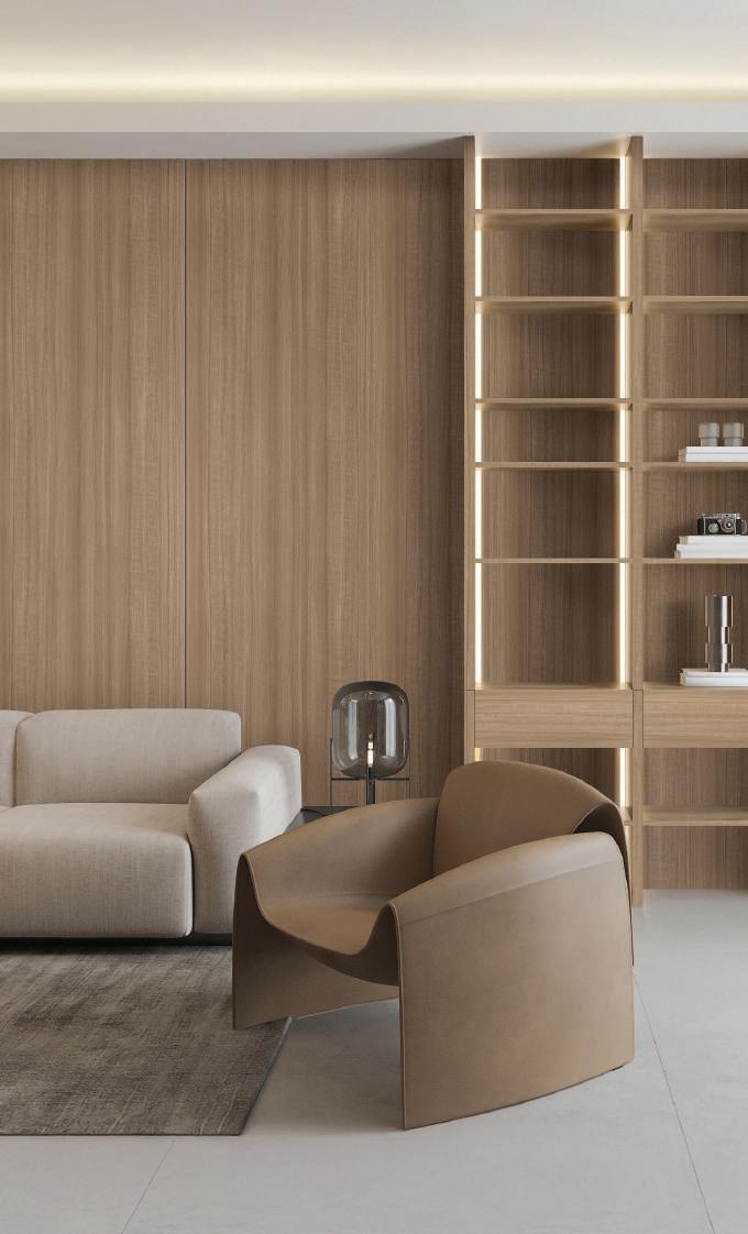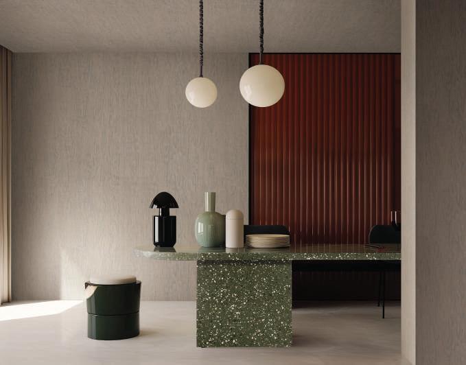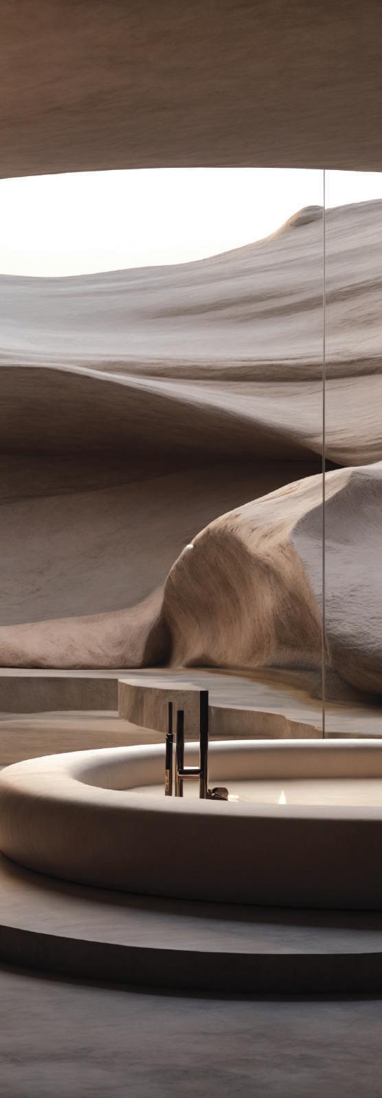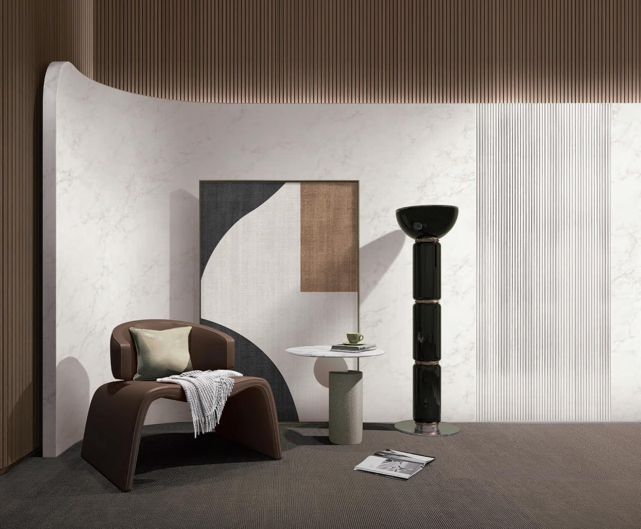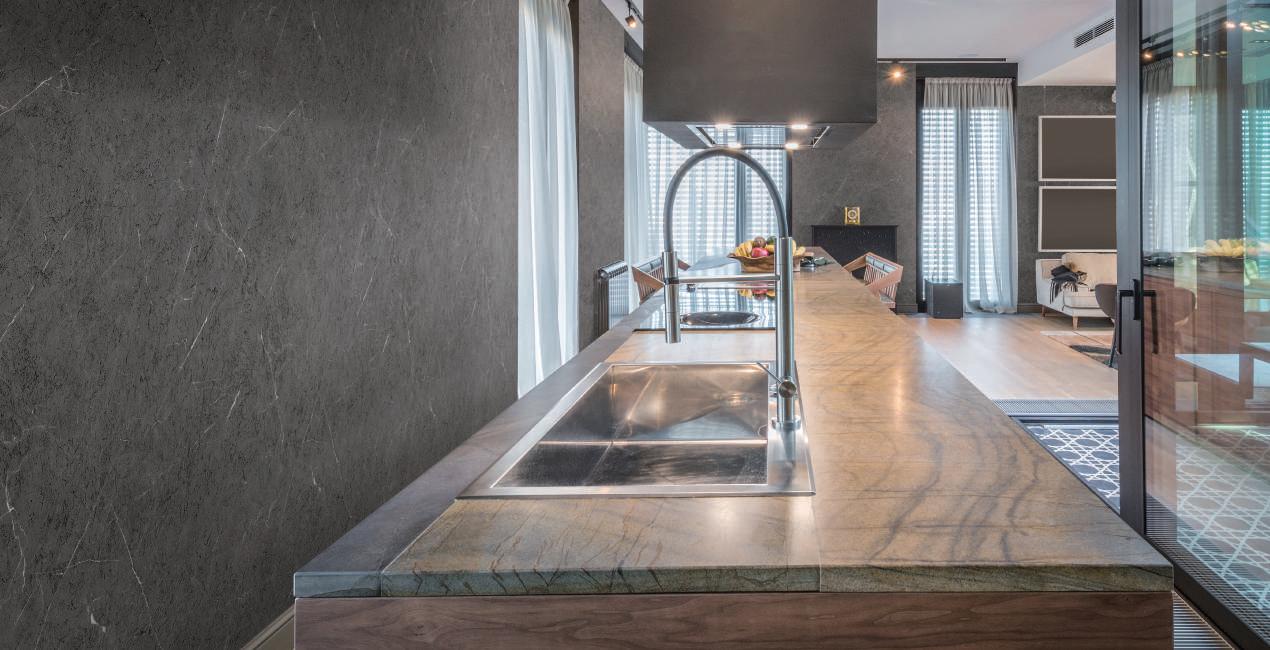 Material 차갑고 중후한 느낌의 대리석, 메탈 소재와 함께 온화한 무드를 연출하는 스톤 소재