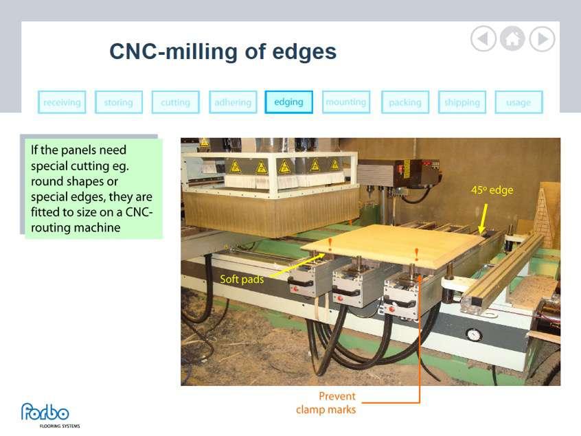 如上所述,可以用亞麻面材(圖E)將邊緣修圓。在 底部應另外提供3-5厘米的亞麻面材,板材厚度需40 mmu以上,以防止因彎曲應力而導致鬆動。