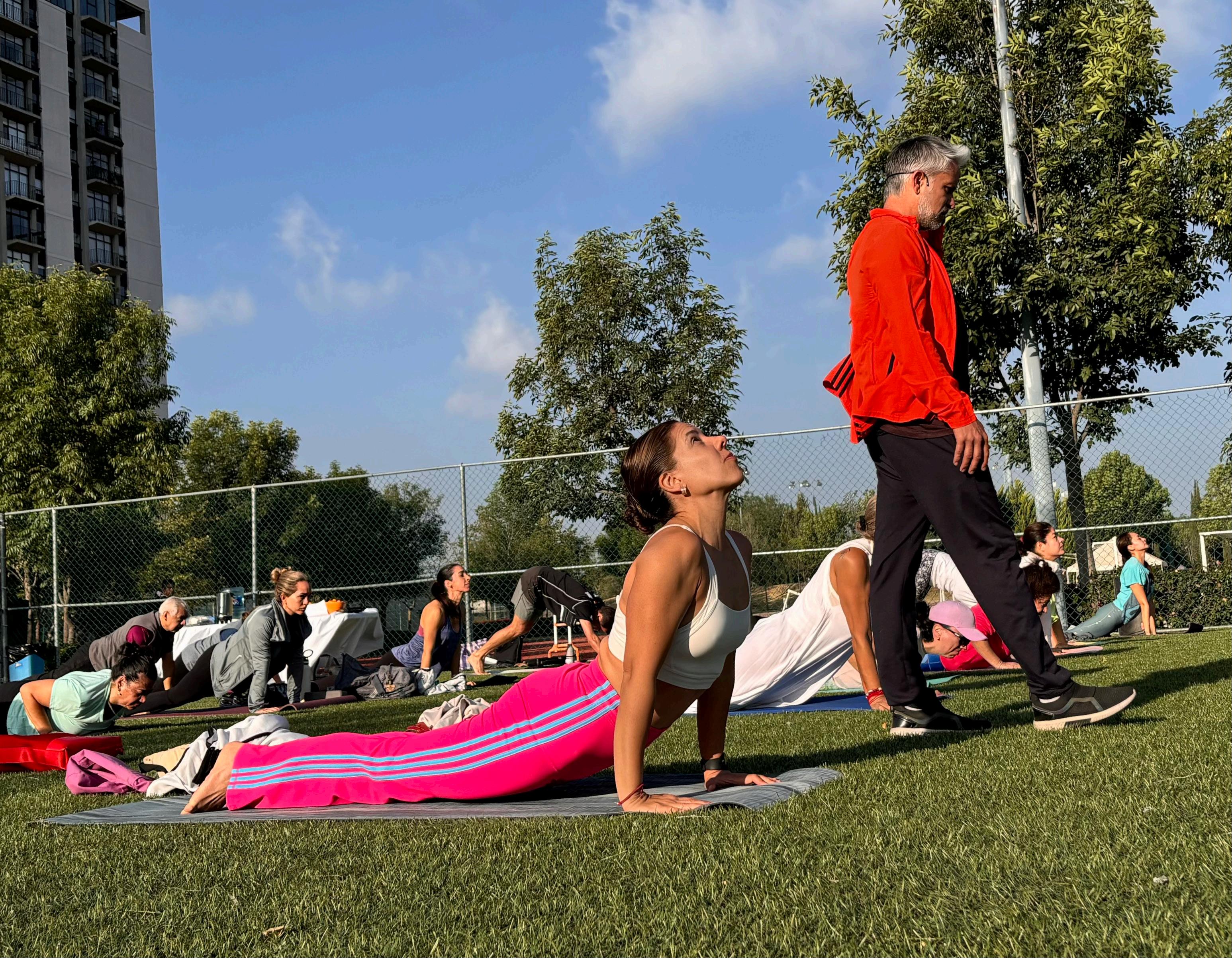 El evento se llevó a cabo en la cancha de fútbol de pasto sintético, un escenario único que fusiona la naturaleza con la modernidad. Con una participación entusiasta, los asistentes se unieron en una práctica colectiva que trajo consigo una sensación de comunidad y conexión.