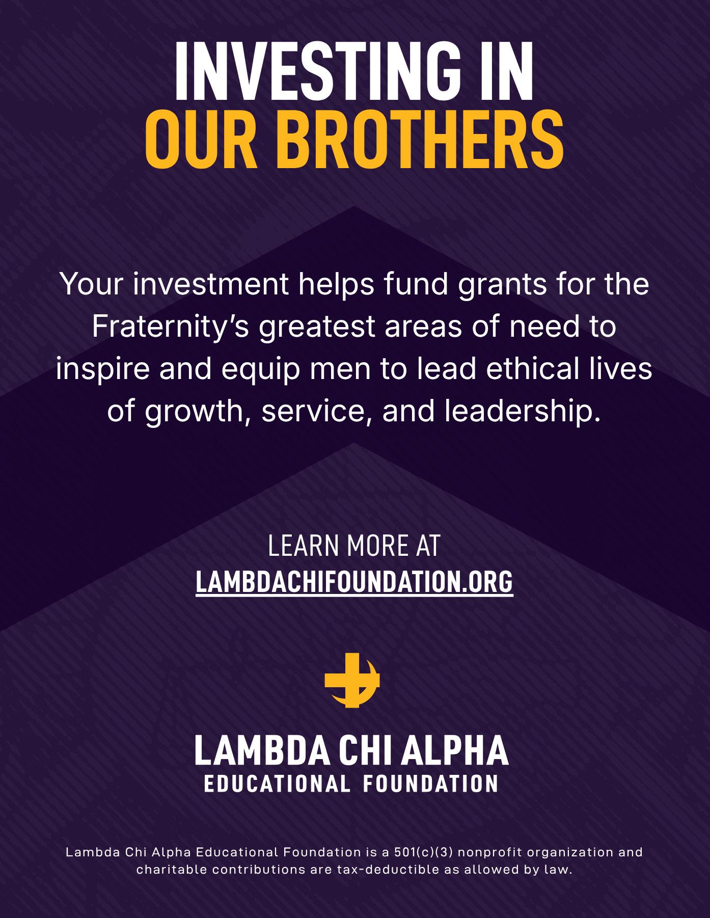 deeply involved in supporting the next generation of Members. Their mentorship, guidance, and example help ensure that the principles and traditions of Lambda Chi Alpha continue to guide our Chapters.