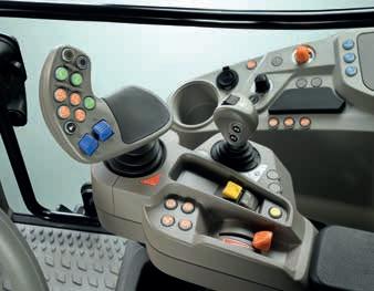• Jusqu'à 5 distributeurs auxiliaires à commande électrohydraulique et système hydraulique 100 l/min avec pompe Load Sensing Jusqu'à 4 coupleurs hydrauliques en position ventrale et 2 coupleurs frontaux supplémentaires