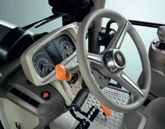 • Transmission à variation continue VRT avec mode ECO à 40 Km/h, inverseur de marche hydraulique avec 5 niveaux de réactivité sélectionnables (SenseClutch) et fonction PowerZero Des systèmes hydrauliques avec un grand choix d'équipements en option pour configurer le tracteur de façon optimale pour les besoins de chaque exploitation et pour travailler avec n'importe quel outil Prise de force à 3 régimes (540/540ECO/1000) et PDF proportionnelle Freinage hydrostatique avec freins sur les quatre roues Cabine à 4 montants suspendue sur Hydro Silent-Block avec plancher plat et avec Cat. 4 L'utilisation est simple et intuitive, grâce à l'accoudoir multifonction MaxCom avec joystick intégré et InfoCentrePro écran haute résolution