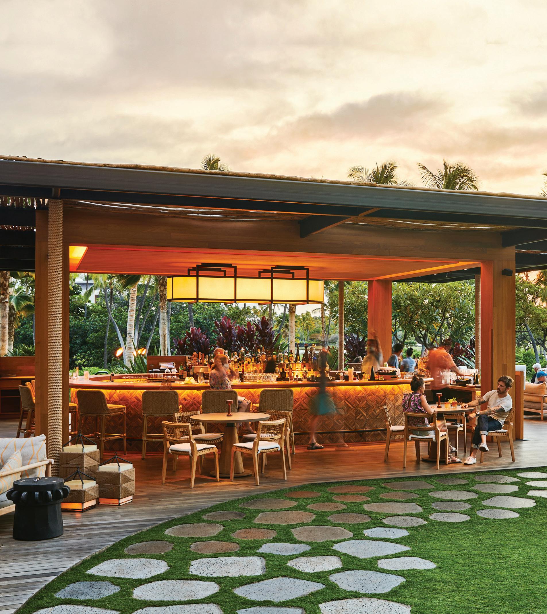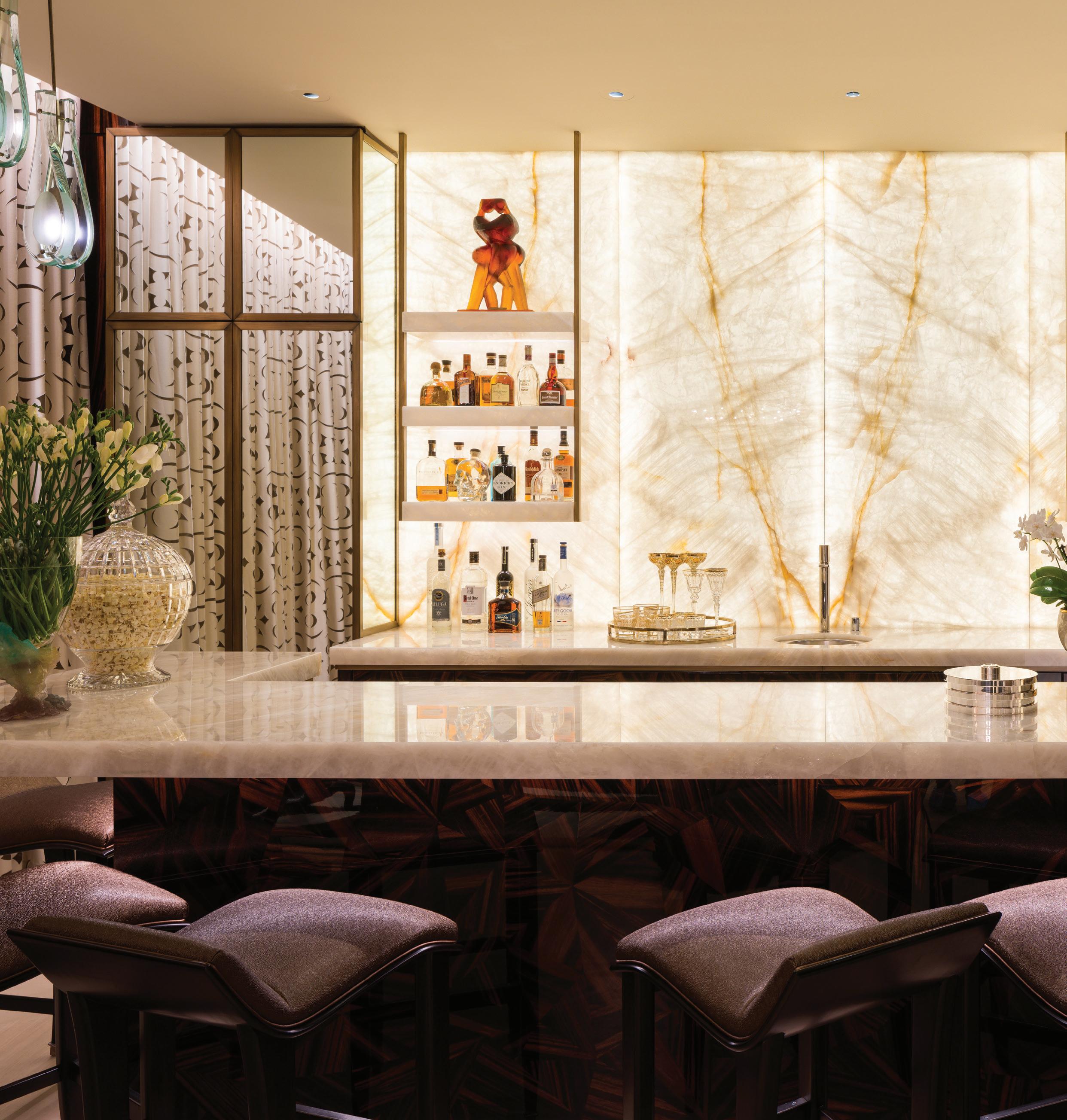 l A central living area is flanked by a lounge and an onyx-clad bar