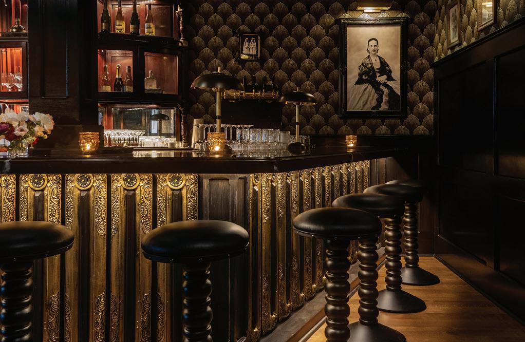 Furniture: Paris low back barstools - Axis Furniture, Los Angeles; nightstands - Allaire Inc., Scottsdale, AZ; Lamps: Lalique at Main Dish, Scottsdale, AZ